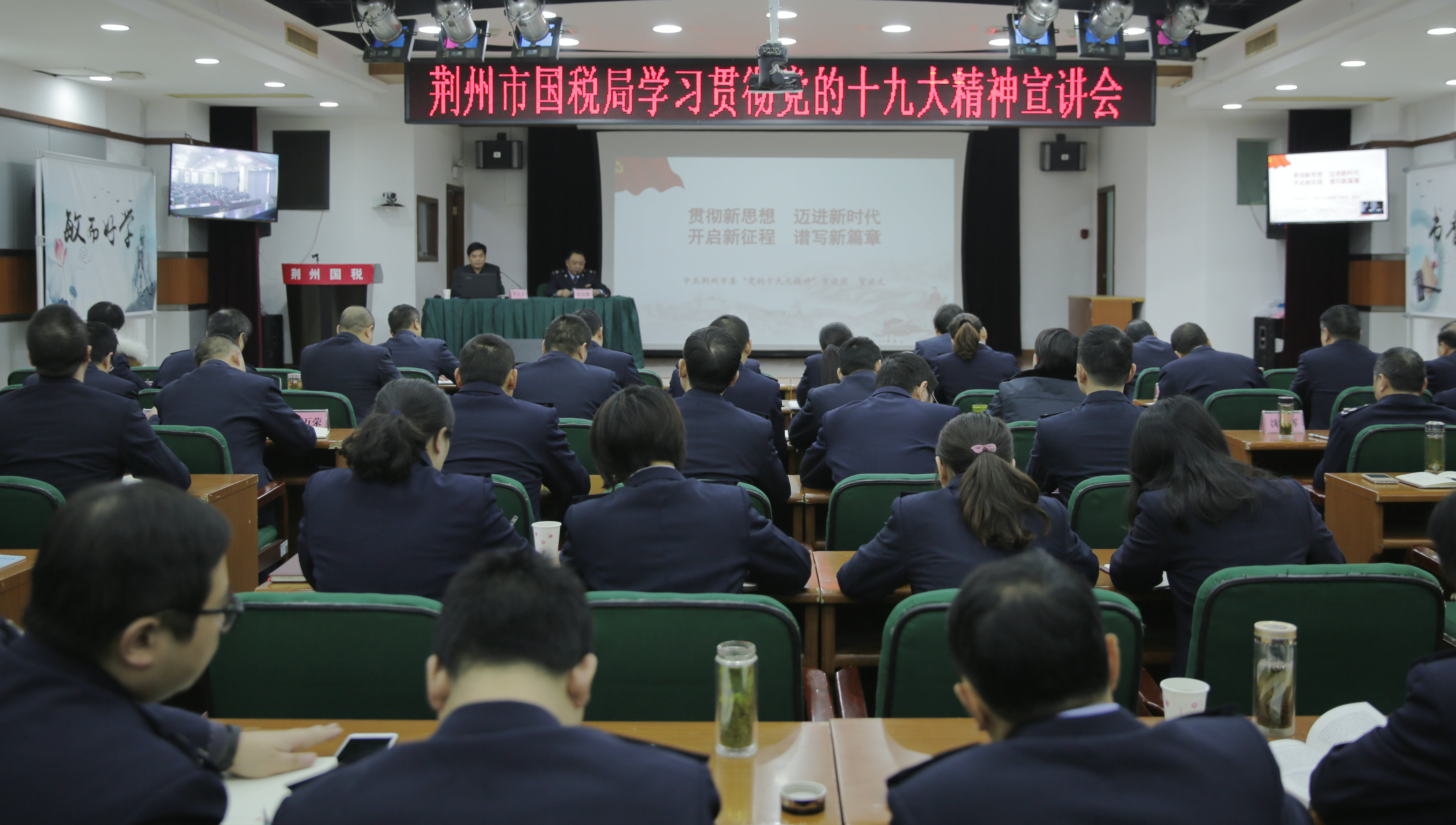 11月22日上午,荆州市国税系统学习贯彻党的十九大精神宣讲会在市国税局举行,中共荆州市委党的十九大精神宣讲团成员、荆州市社科联党组书记、主席贺洪文到会宣讲。市局机关全体党员干部参会,各县市区局、市直属各单位全体党员干部通过视频全程收看。市局党组书记、局长崔光勤主持会议并作重要讲话。